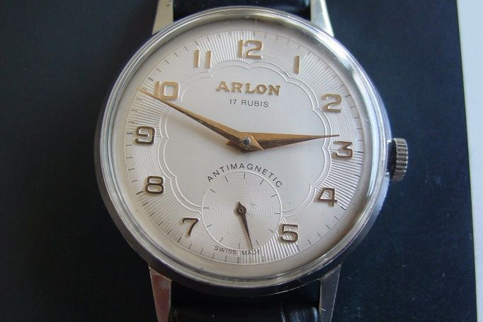 *BRAND:ARLON *Condition:GOOD *Case:GOOD *Dial:GOOD *Movement:17 Rubis hand winding *CASE DIAMETER:34:mm crown does not included in the size *MEN *SWISS MADE *WORLD WIDE FREE SHIPPING AIR POST REGISTER MAIL